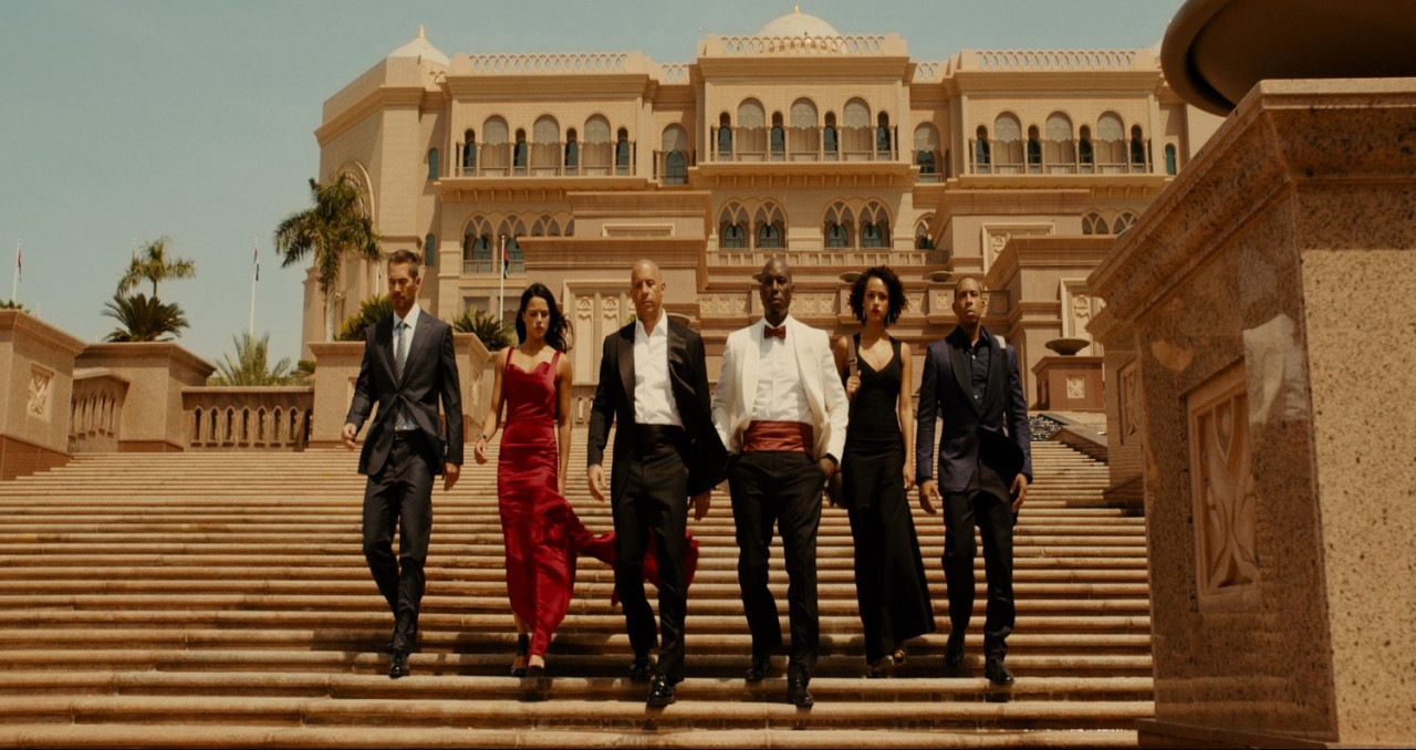 이전 시리즈의 스피드 중심 액션에서 벗어나, 이번 작품은 감정의 에너지로 움직이는 액션을 보여줍니다. 제임스 완은 공포영화 출신답게 리듬감 있는 카메라 워크로 속도감을 살리면서, 감정의 여운을 한 프레임에 담아냅니다. 특히 아부다비 빌딩 점프 장면은 현실을 초월한 쾌감과 동시에 ‘팀워크의 상징’으로 해석됩니다.