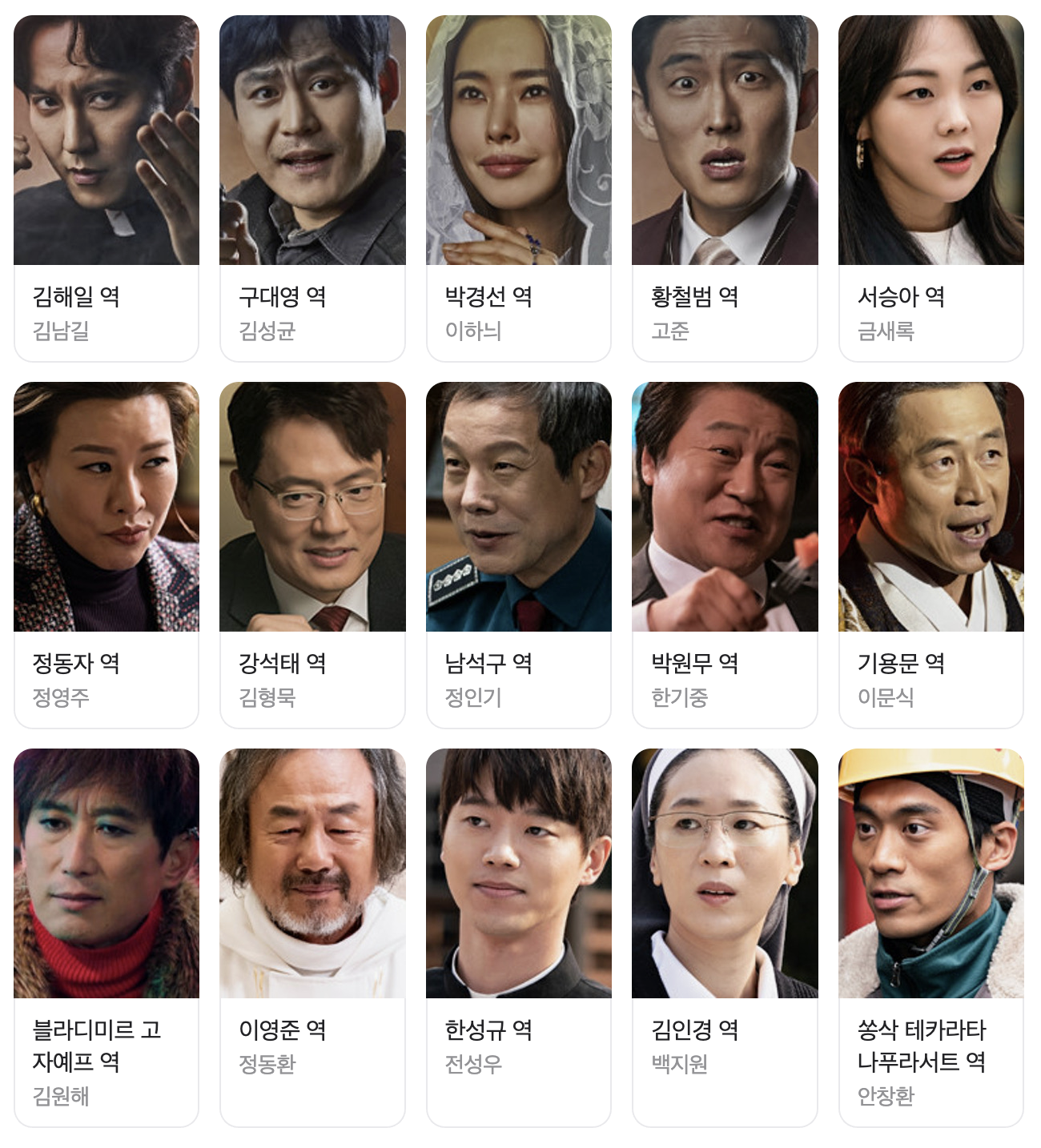 배우들의 캐릭터 해석 역시 작품의 퀄리티를 높여주었습니다. 김남길은 단순히 화내는 사제가 아니라, 과거의 트라우마와 책임 의식으로 흔들리는 입체적 인물을 잘 표현한 것 같습니다. 김성균이 연기한 구대영은 허술해 보이지만 결국에는 정의 편에 서는 ‘평범한 인간의 힘’을 보여주었고, 이하늬가 보여준 박경선은 권력과 정의 사이에서 줄타기하는 법조인의 현실성을 드러냈죠. 여기에 고준과 금새록 같은 조연들이 극의 균형을 맞추며, 각각의 캐릭터가 단순한 기능을 넘어 사회적 유형을 대변하는 존재로 자리 잡았습니다. 개인적으로는 케릭터들이 보여주는 밸런스가 참 좋았습니다.
