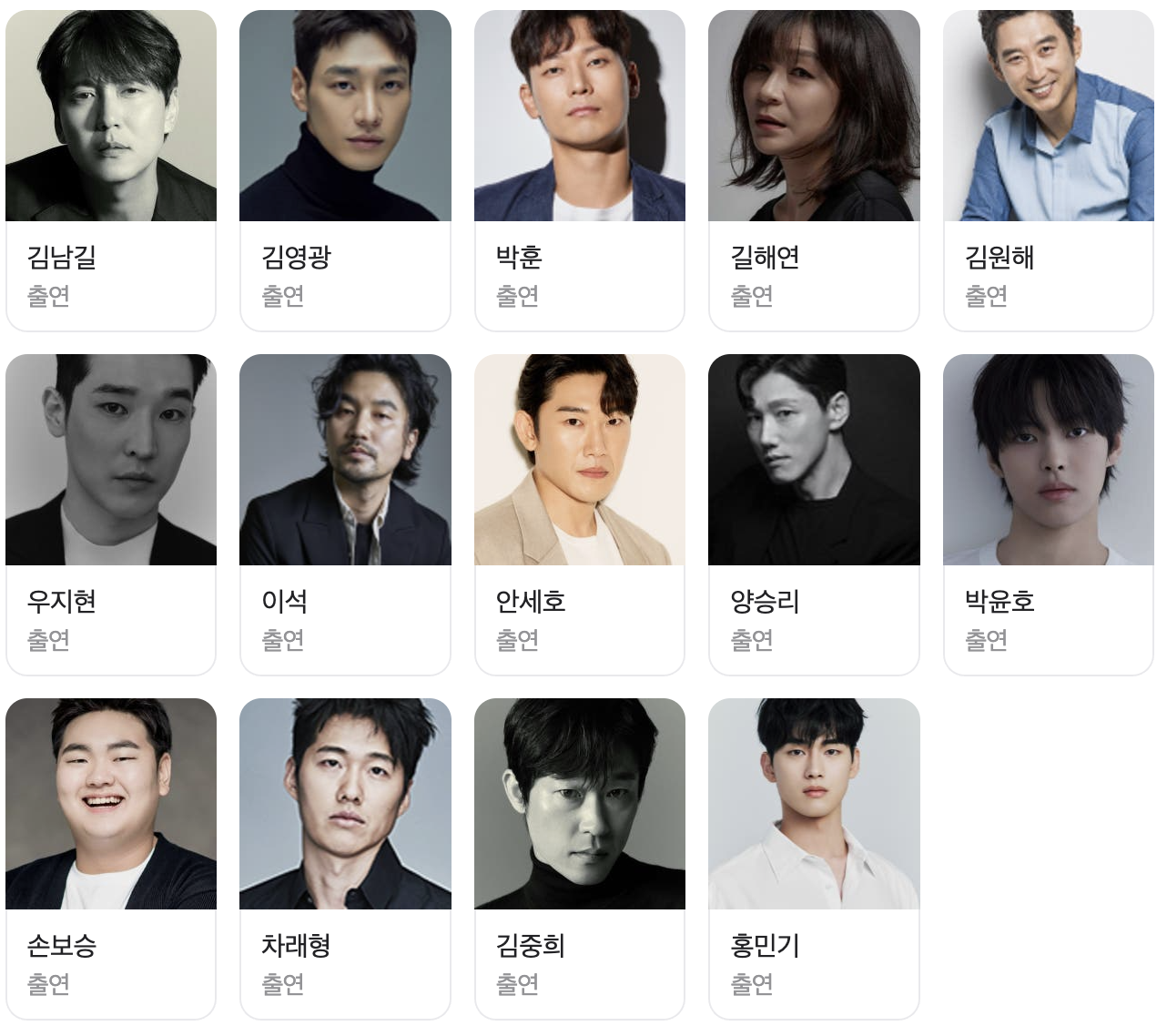 - 출연 : 김남길, 김영광, 박훈, 길해연, 김원해, 우지현, 이석 등