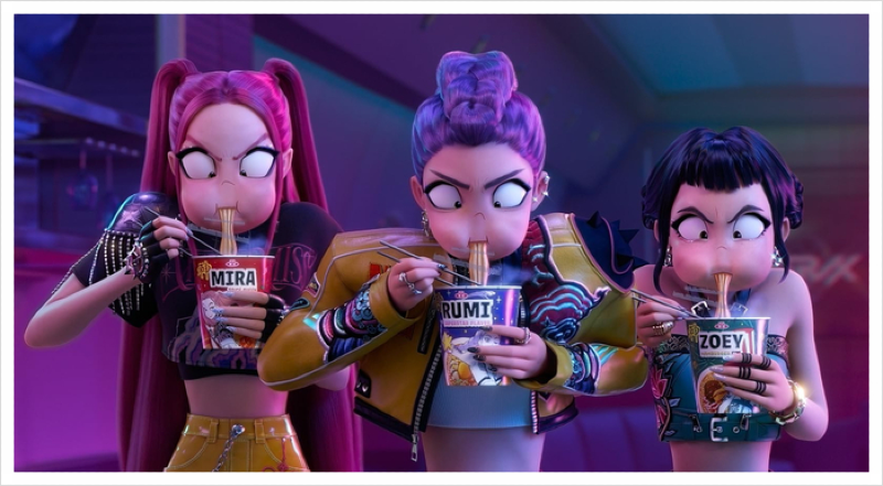 사운드트랙이 안 들키는 무기라는 점도 인상적입니다. 제가 “Golden”을 흥얼거릴 때마다, 스스로 이 애니가 ‘노래로 완성된 스토리’였음을 깨닫게 됩니다. 음악 한 곡을 통해 작품의 스토리 전개, 정서 등을 기억나게 한다면, 케데헌은 노래로 완성된 작품임에 틀림없는 것 같습니다. 특히 중독적인 곡 중 하나인 '테이크다운'은 트와이스의 정연, 지효, 채영이 영어로 불렀다고 하죠. 이 내용에 대해서는 쿠키영상에서 노래부르는 장면이 등장하기도 해요. 요즘 트와이스가 미국에서 인기가 높다고 하는데 이번 작품을 계기로 더 많은 인기를 받길 바래봅니다.