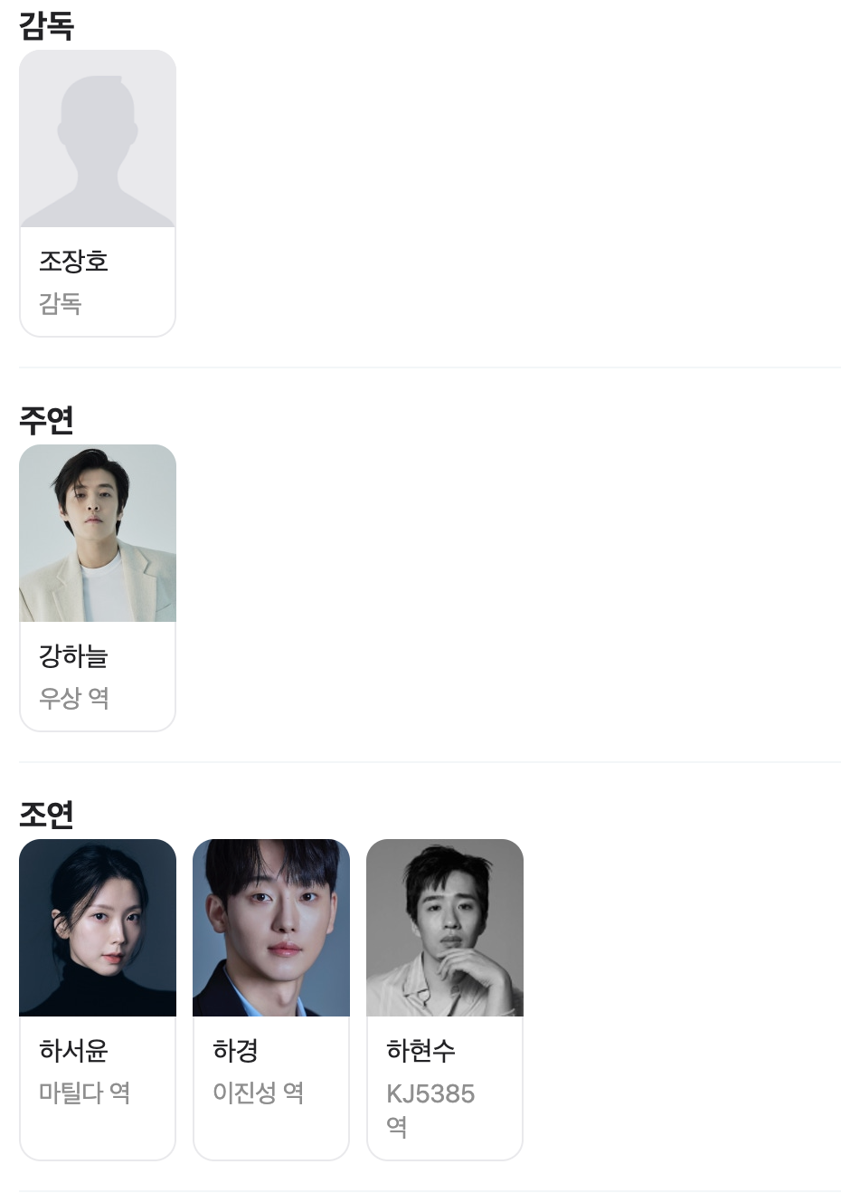 - 출연 : 강하늘, 하서윤, 하경, 하현수 등