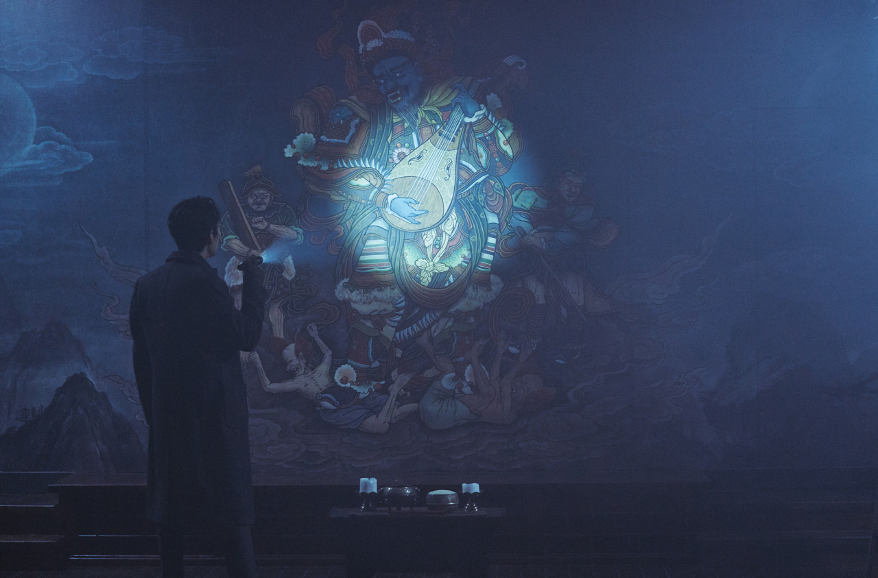 저는 개인적으로 이 작품의 연출이 상당히 좋았는데요. 촬영감독 김태수의 색채와 조명의 전략이 작품의 미스터리함을 한층 돋보이게 만들어주었다고 생각합니다. 시푸른 색조와 빛-어둠 대비는 ‘종교적 진실’보다는 ‘모순된 종교’가 가진 음습한 속성을 대표하며, 음악과 효과음은 공포보다 스릴, 강한 공포보다 실체를 숨기는 미스터리를 부각시키는 방향으로 잘 기능합니다.